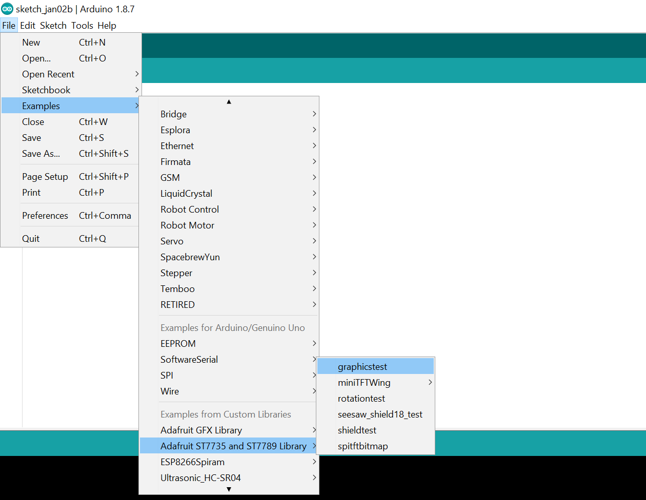 Cài đặt thư viện Adafruit ST7735 TFT