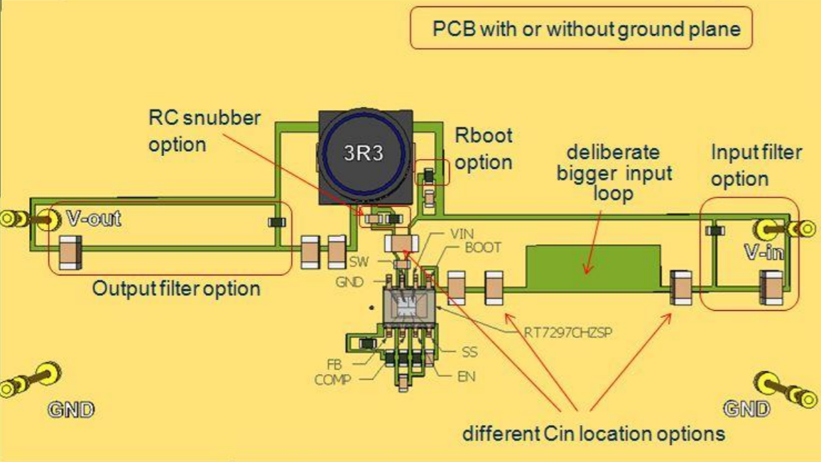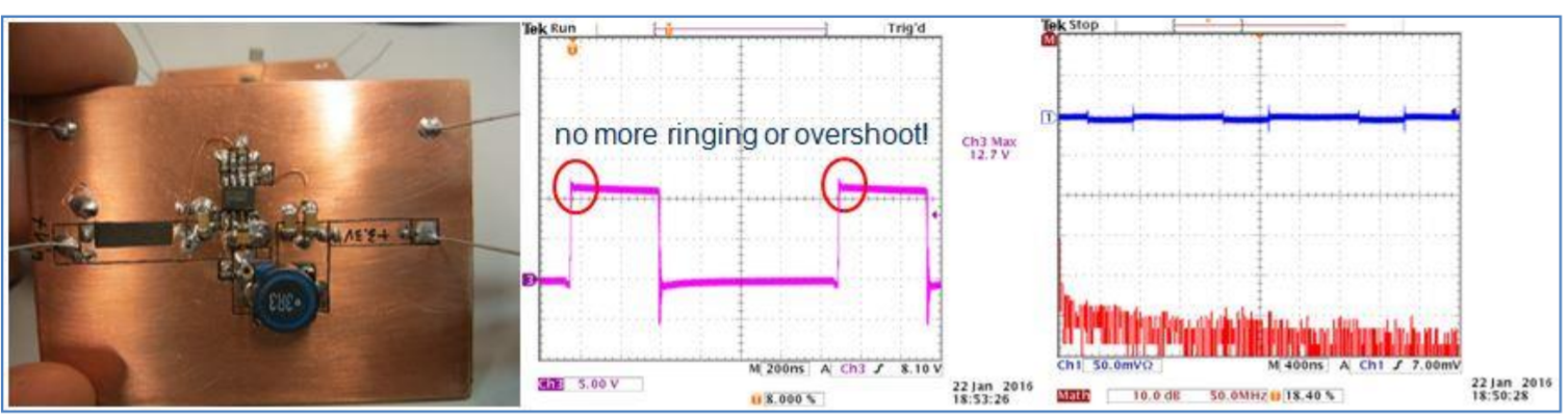 Với giải pháp này, cho bo một lớp, vọt lố chuyển mạch đã biến mất, cũng không còn nhiễu gợn, bức xạ điện từ cũng ở mức nền.