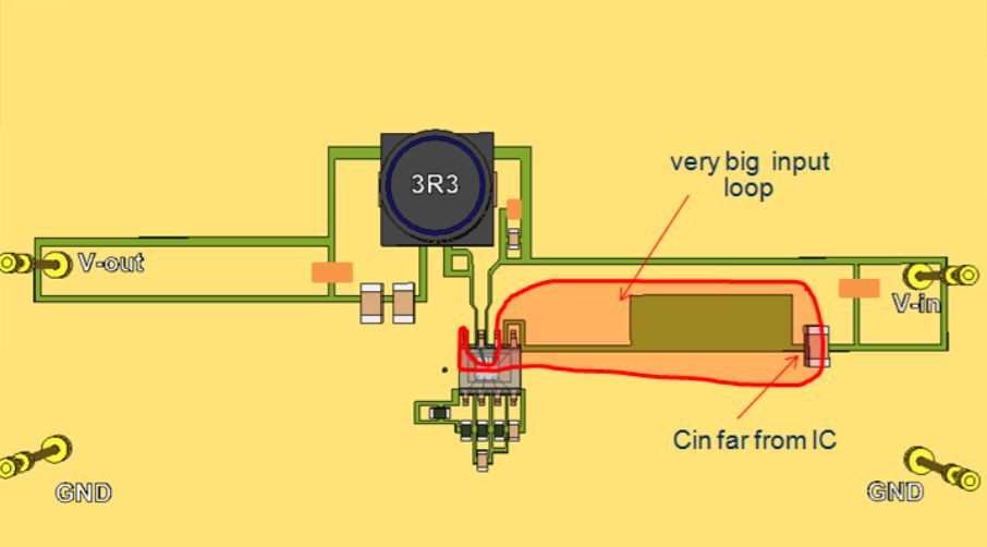 Đây là một vị trí đặt xấu, kết quả là tạo ra nhiều điện cảm ký sinh trong các lần chuyển mạch (chuyển mạch on/off theo đúng nghĩa là switching loop)